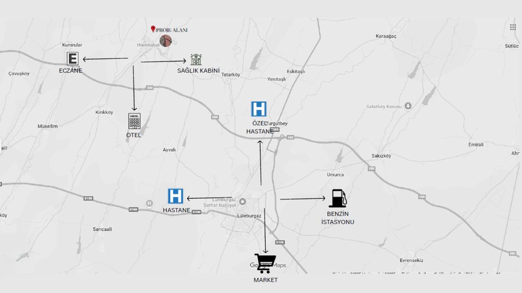 Proje alanı, günlük ihtiyaçlara kolayca erişilebilen merkezi bir konumda yer almaktadır. Sağlık, eğitim, alışveriş ve ulaşım noktalarına olan mesafeler kısa sürüş süreleriyle erişilebilir durumdadır.